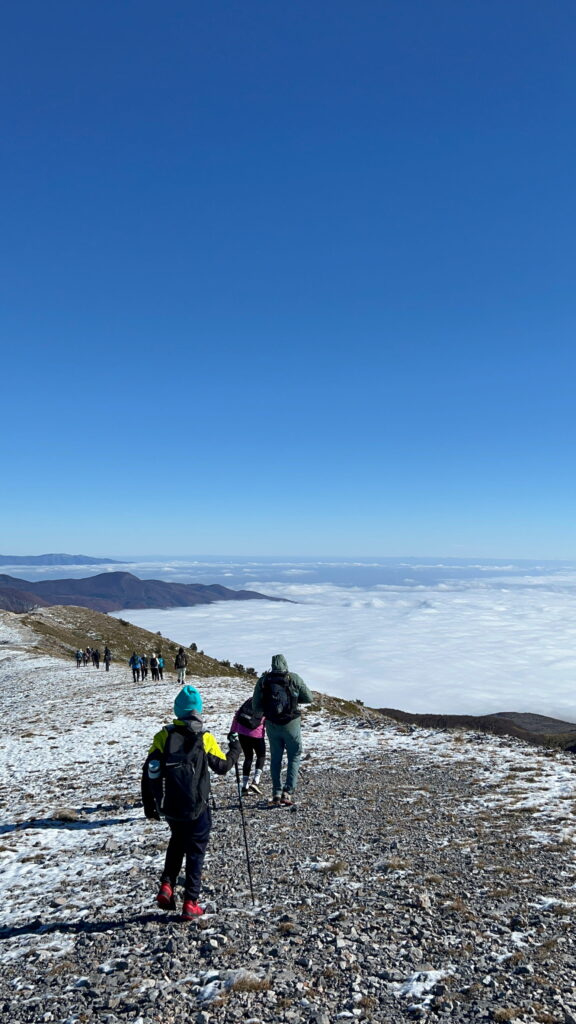 Η θέα ανεμπόδιστη ο αέρας δυνατός και παγωμένος στην κορυφή η ομάδα ακούραστη!